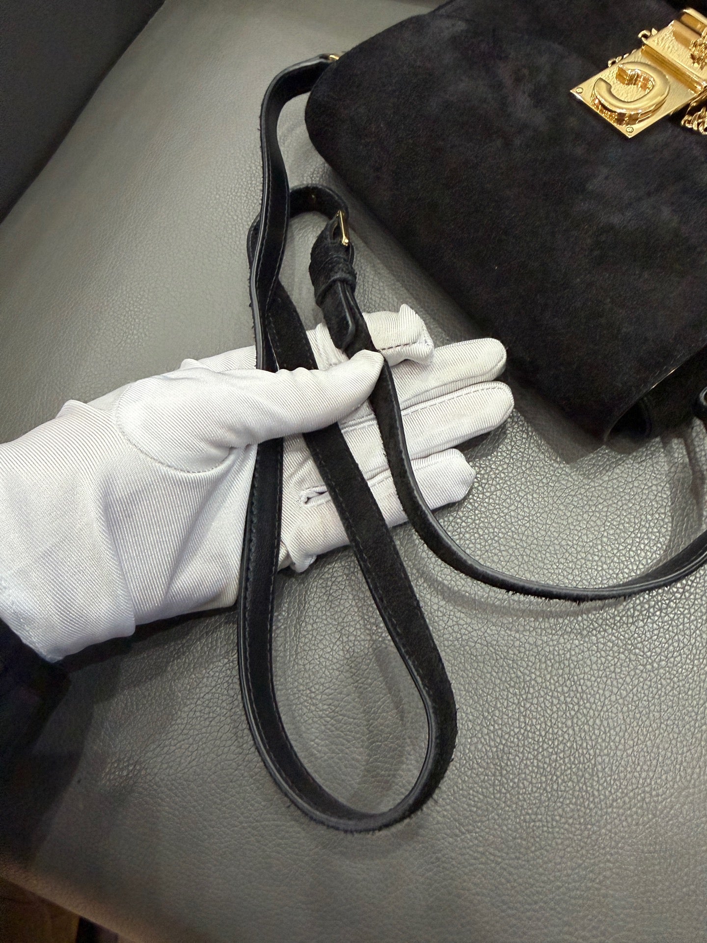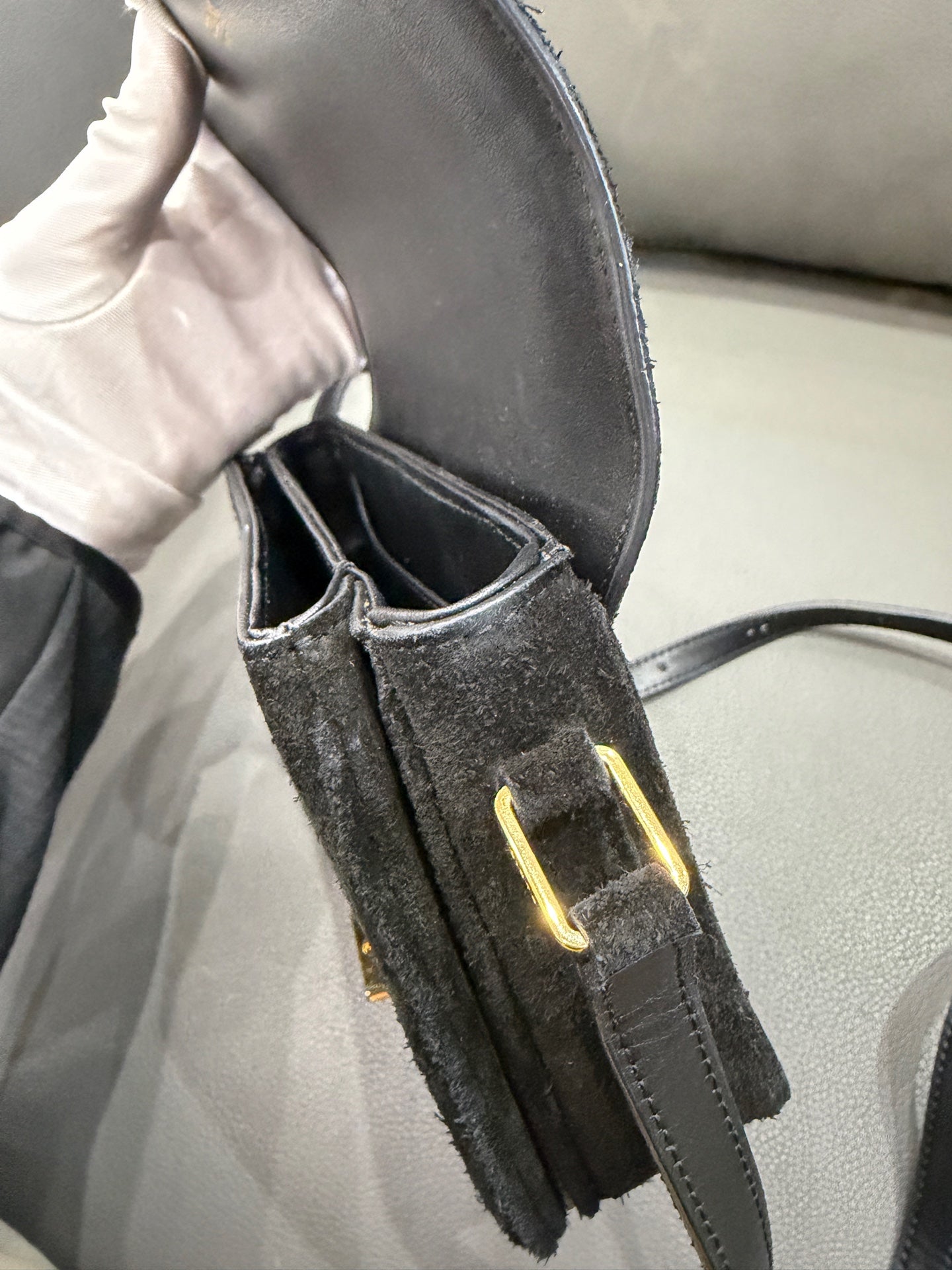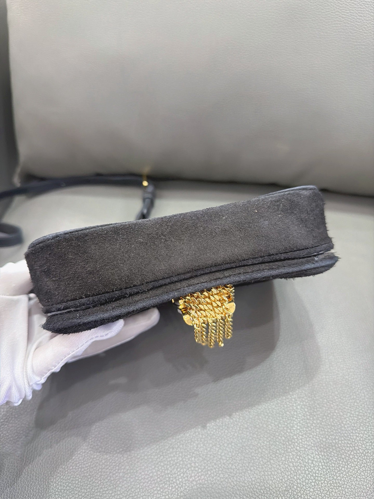 SKU: JK015-002001216013-Celine-C Charm Messenger-Suede-Small-Gold-Tone-Black