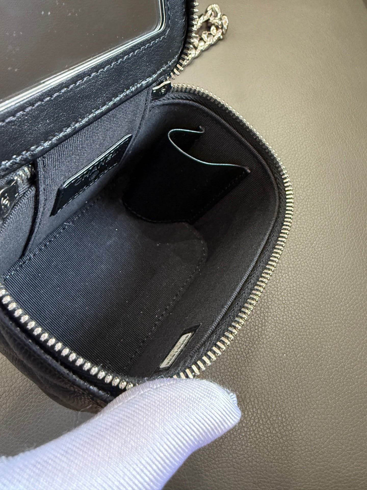 Chanel - 22S Enamel Chain Vanity Case - Caviar leather - Black with Silver-Tone Hardware - (Mini)