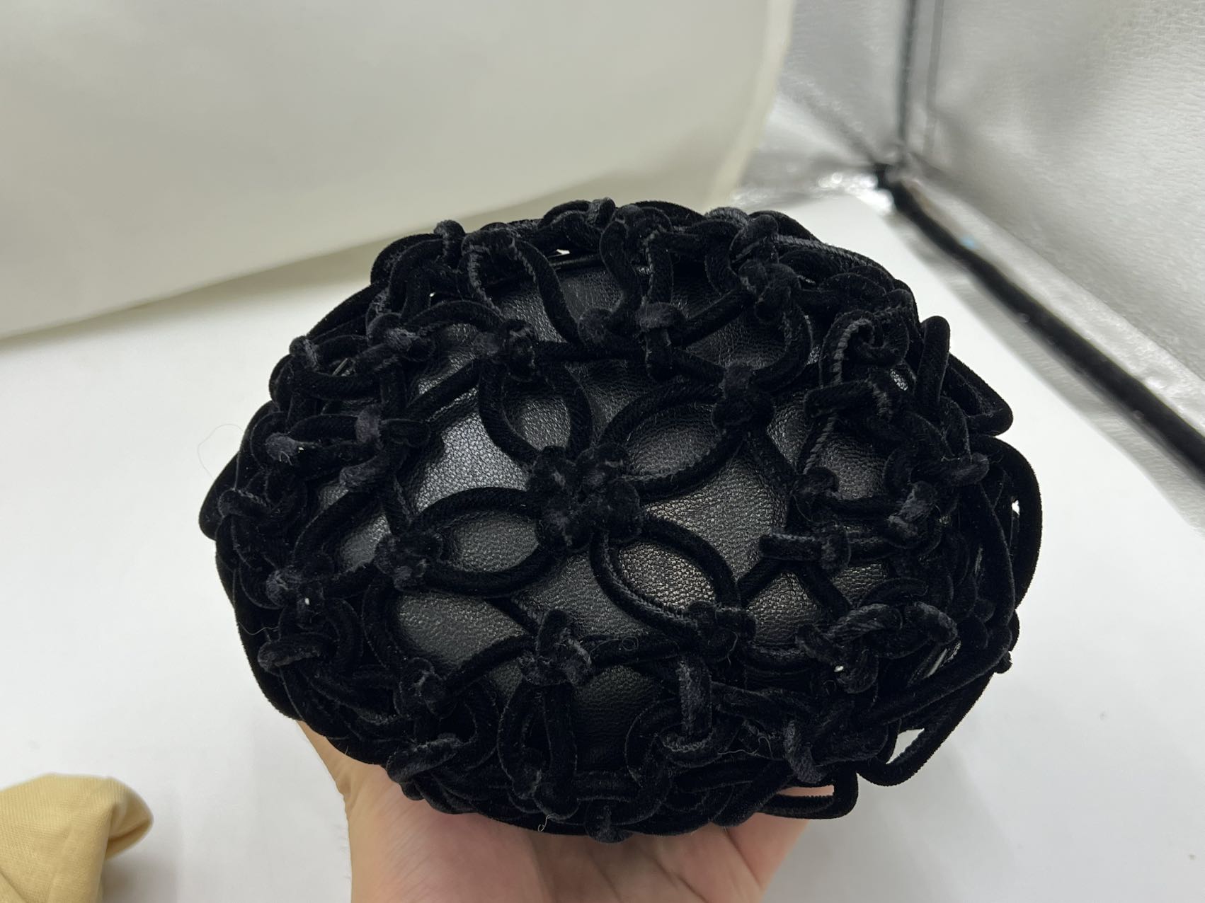 Chanel - Bucket Bag - Velvet mesh and quilted lambskin leather - Black - (mini)