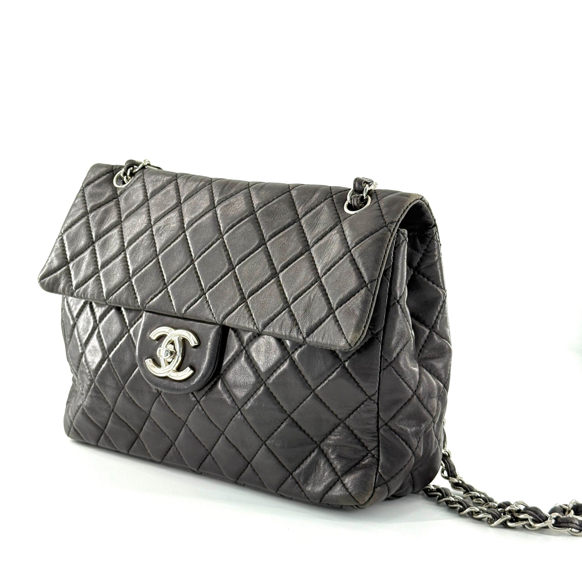 Chanel - Classic Flap Jumbo (Single Flap) - Lambskin leather - Charcoal Grey with Silver-Tone Hardware - (large)