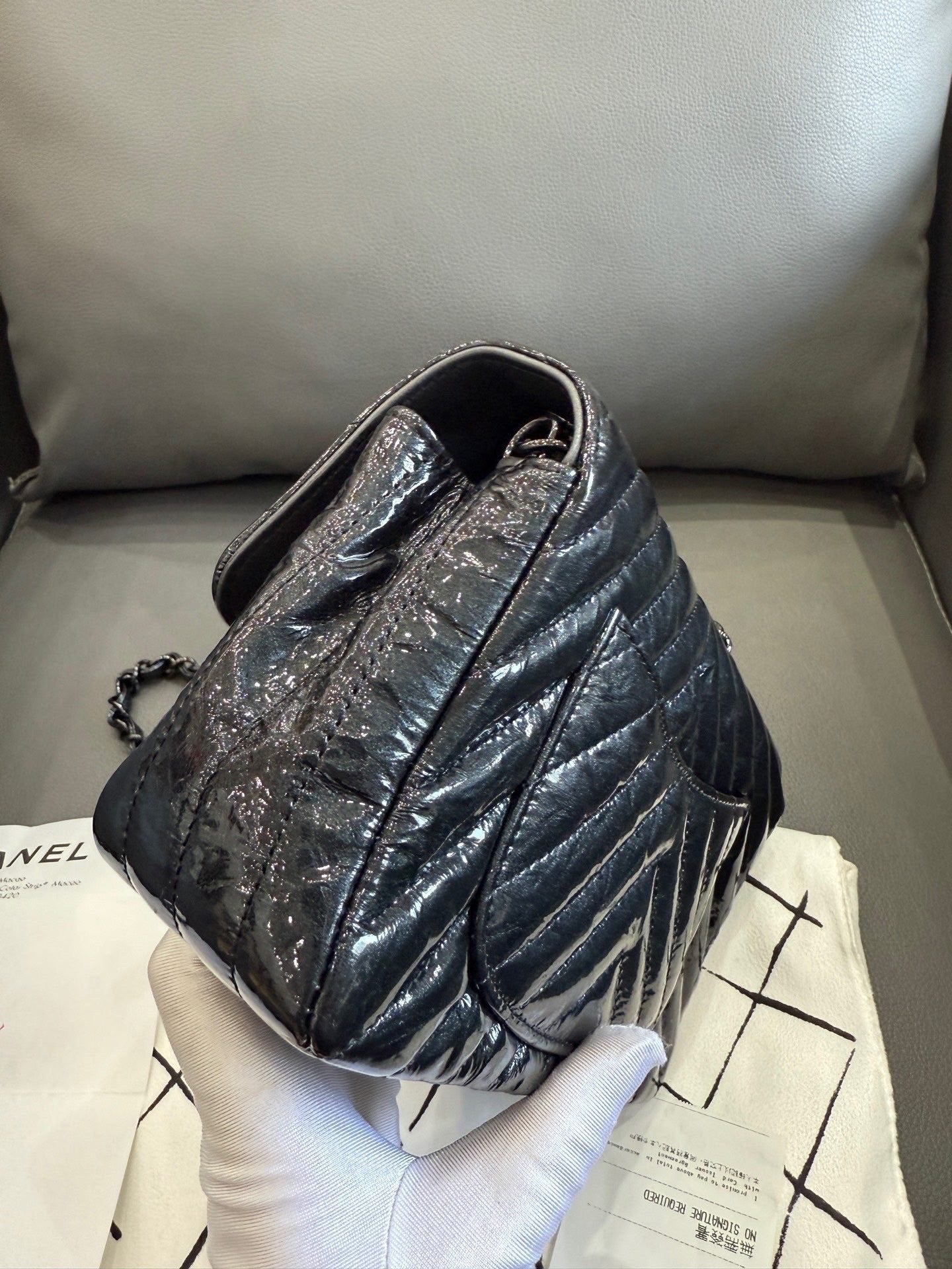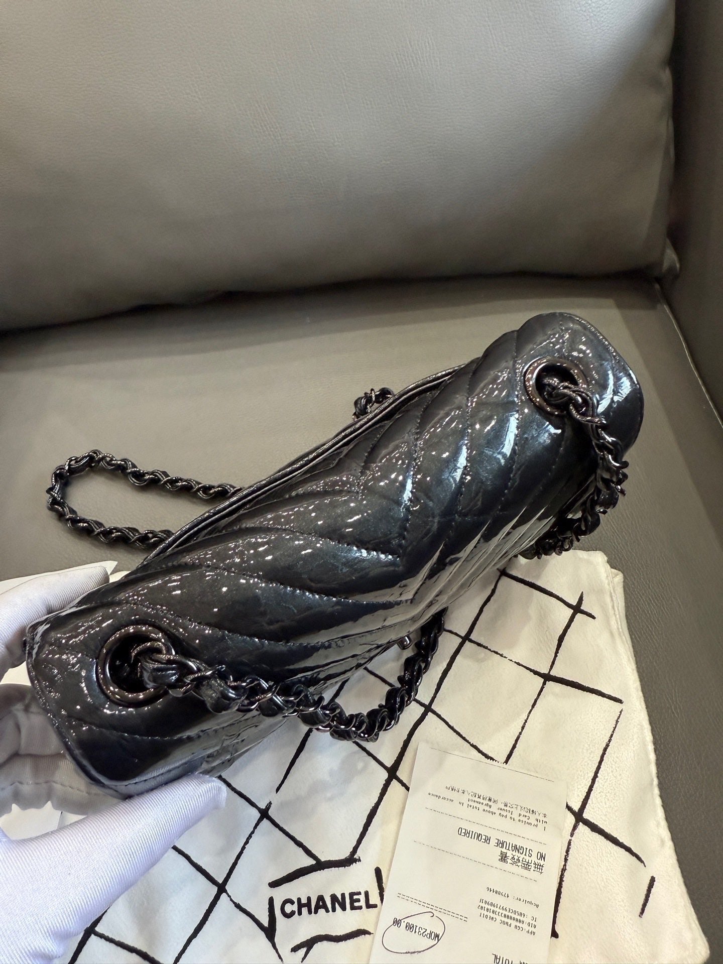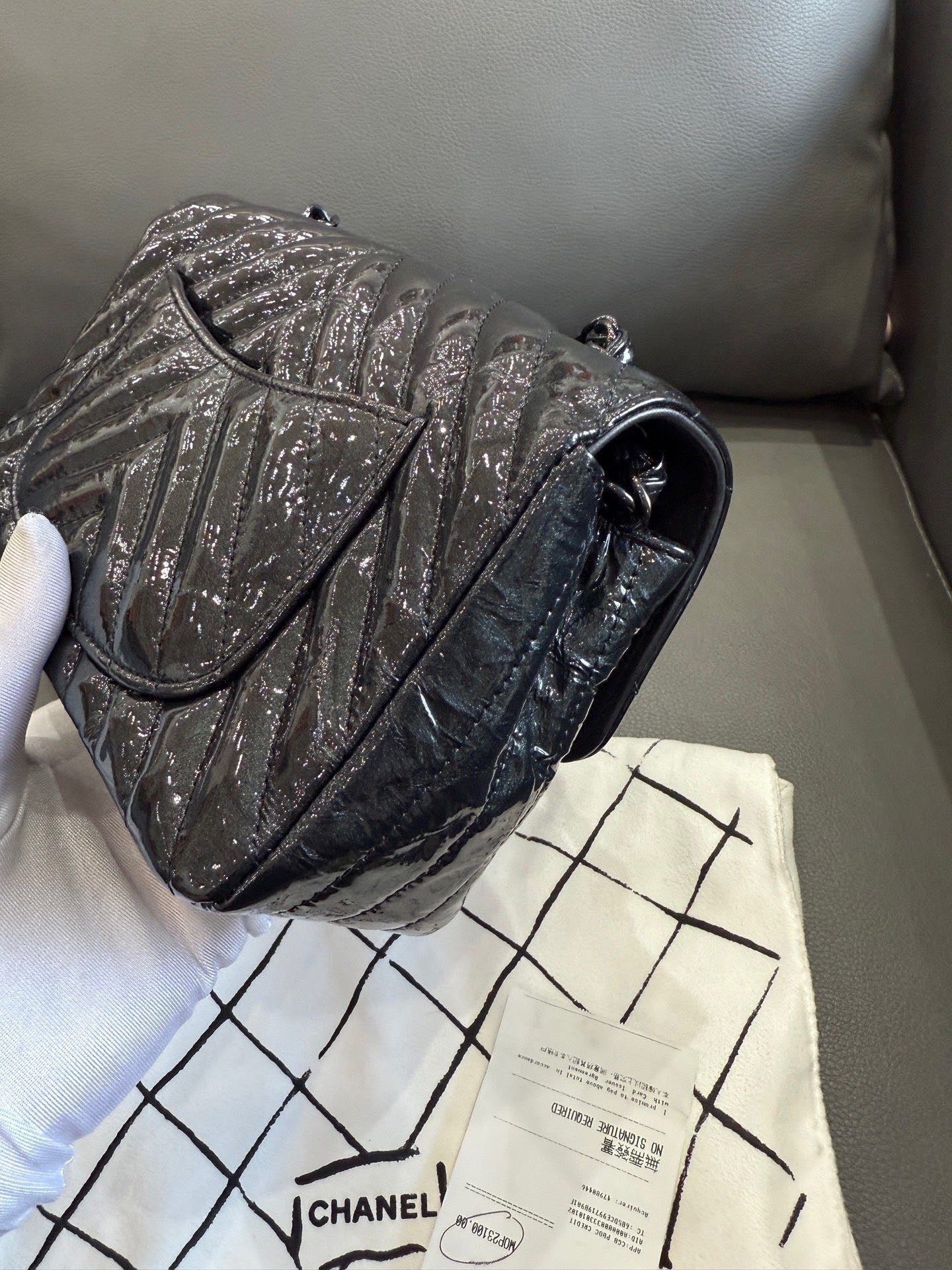 Chanel - Classic Flap Large Mini - Wrinkled patent leather - Black - (mini)
