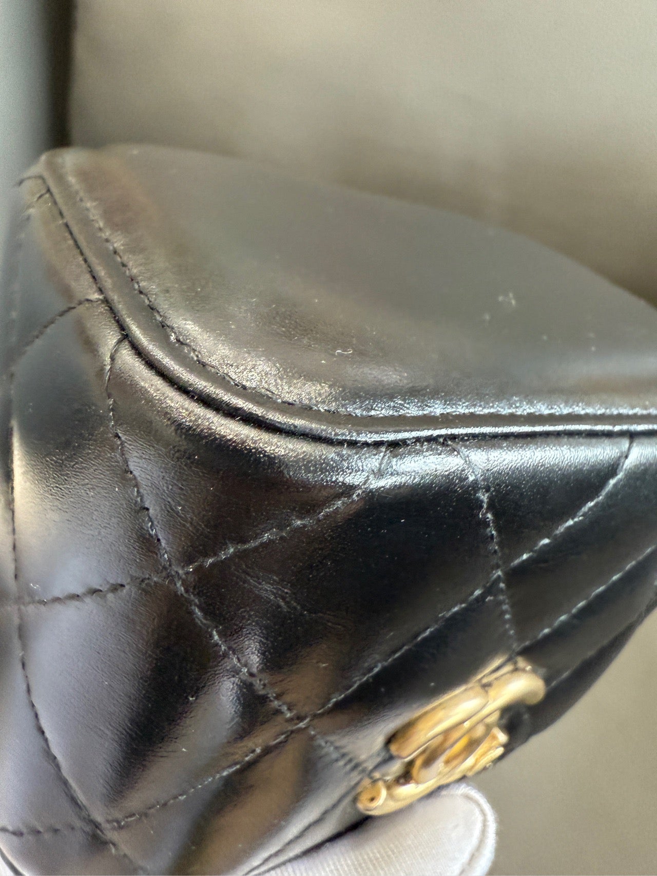 The most distinguishing elements of this piece are its compact vanity case shape, the plush diamond-quilted lambskin, and the highly coveted adjustable chain strap featuring dual gold-tone pearls. The '31-series' authenticity code further confirms its recent production period.