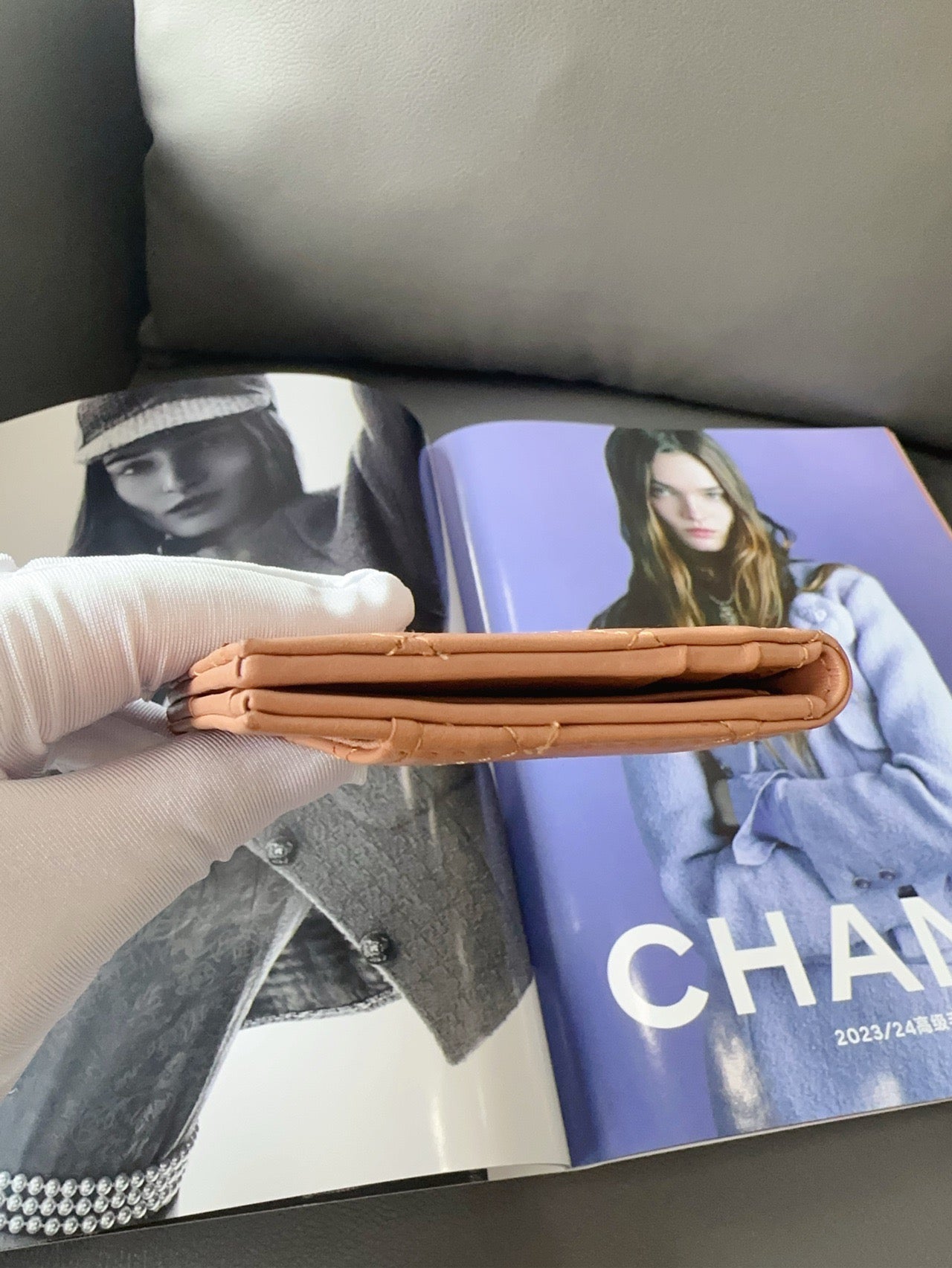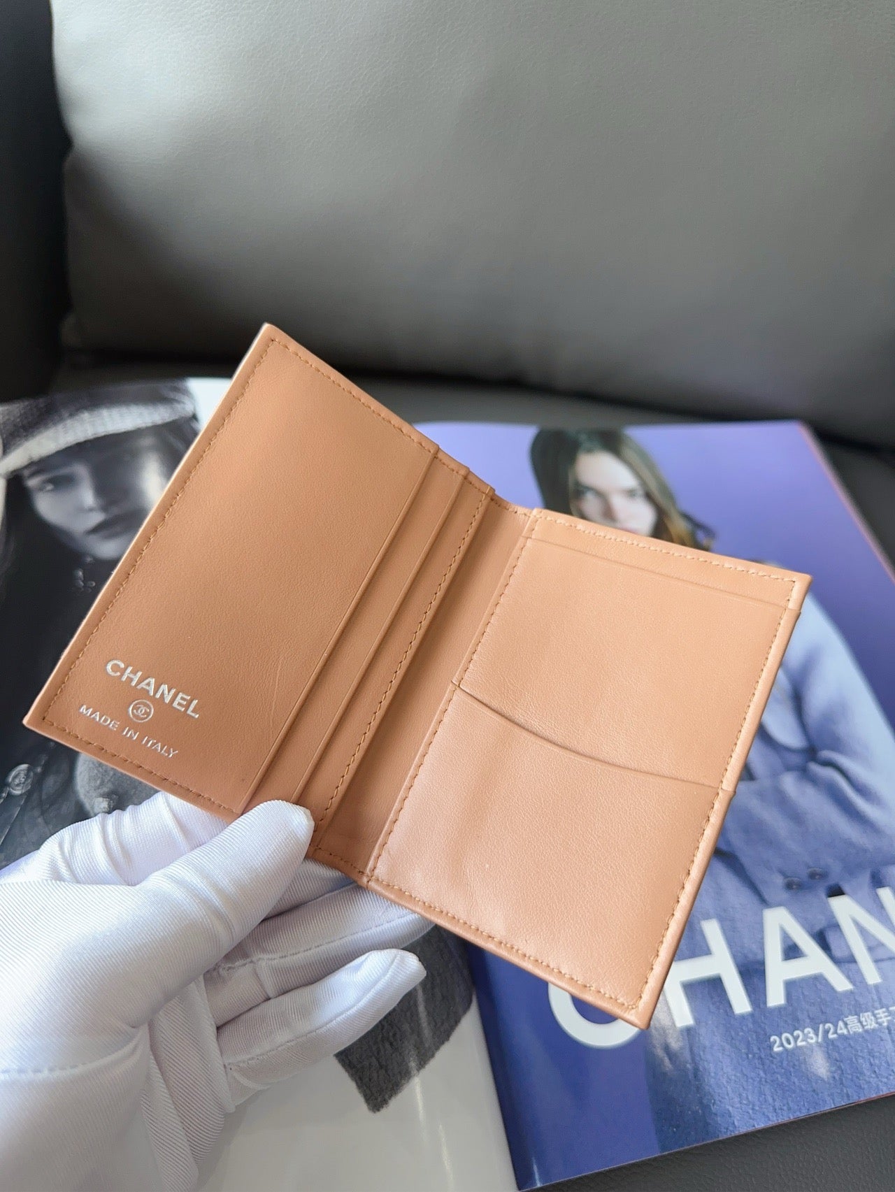 This versatile accessory combines the functionality of a passport holder with card storage, making it ideal for travel or daily use. The classic diamond quilting and subtle branding embody Chanel's timeless elegance.
