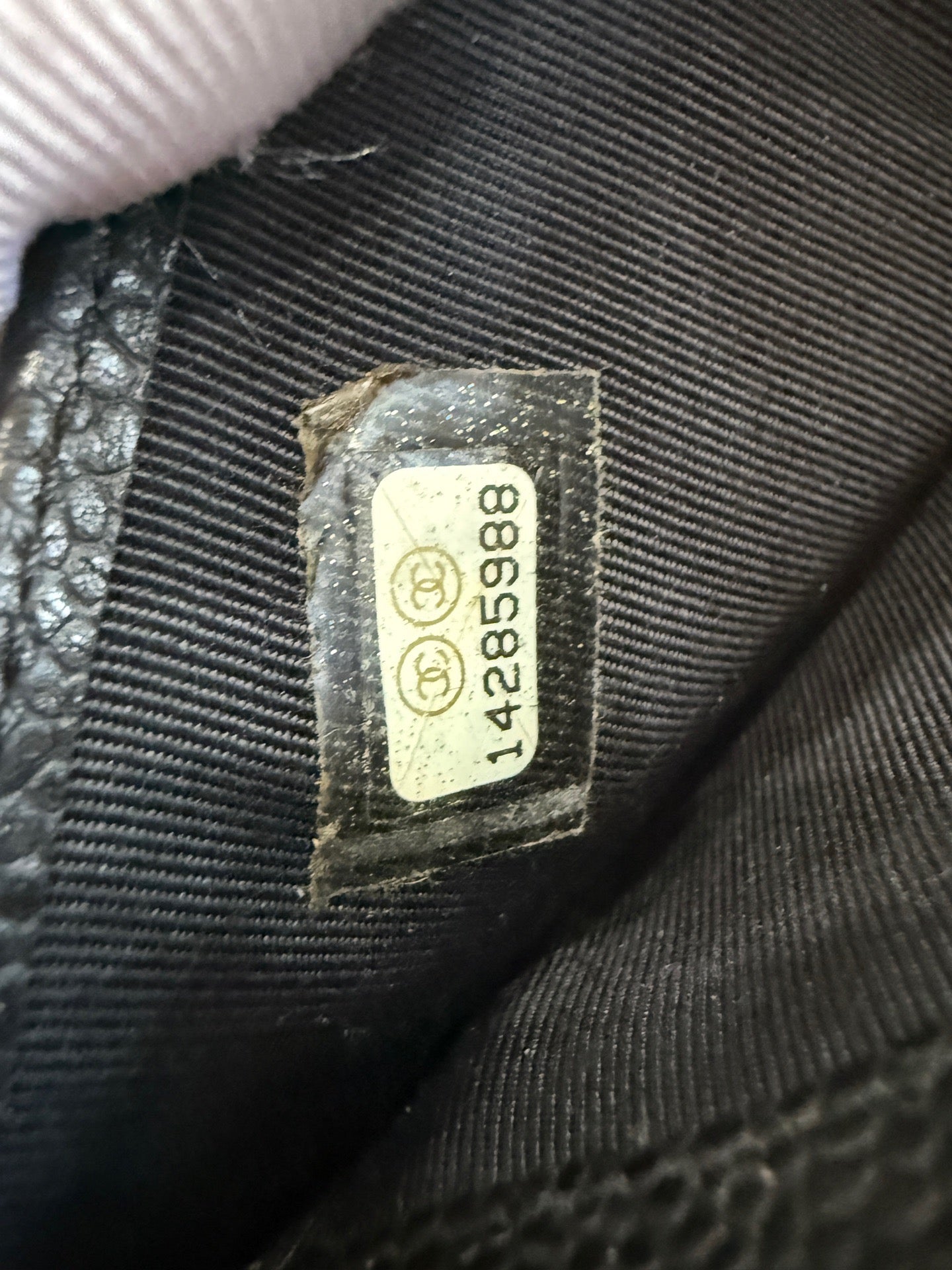 A highly functional and iconic trifold design, offering ample organization within a compact silhouette. The durable caviar leather and classic diamond quilting make it a timeless Chanel accessory, identified by its 14-series serial number.
