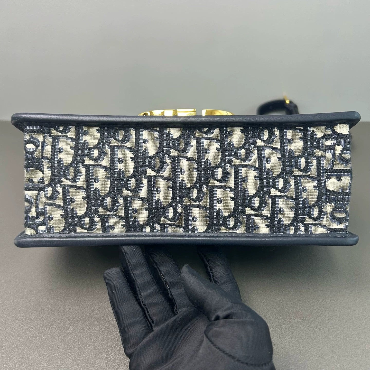 Dior - 30 Montaigne Oblique Embroidered Flap Bag with Chain - Embroidered canvas with leather trim - Blue - (medium)