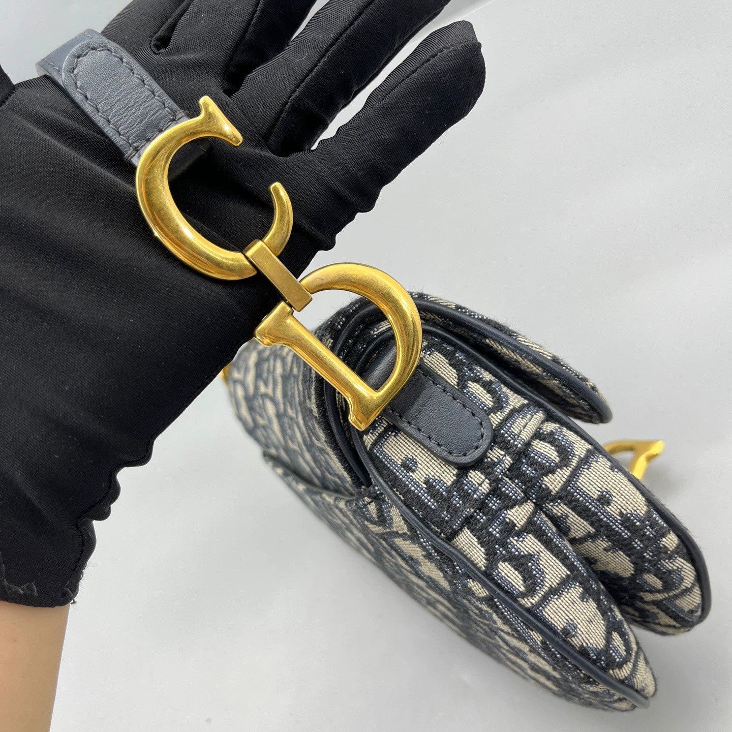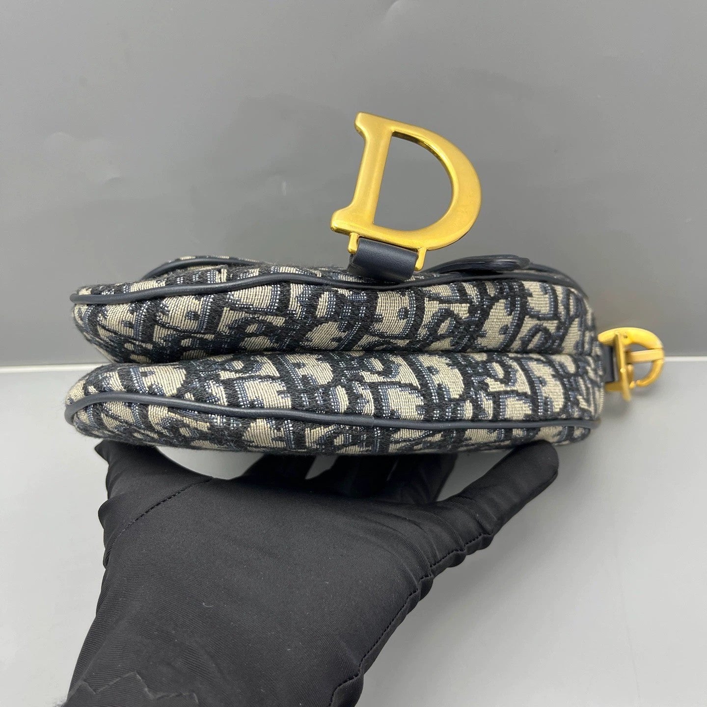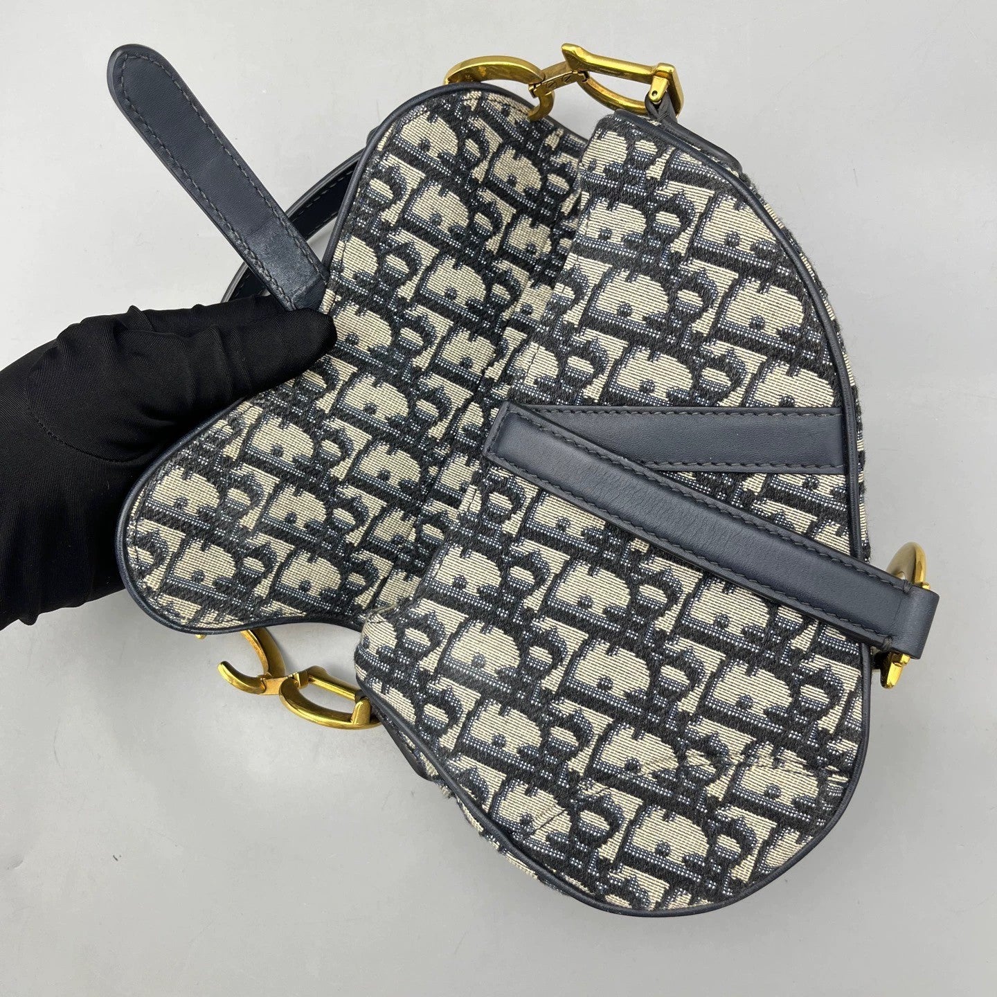 Dior - Saddle bag - Dior Oblique jacquard canvas with navy blue calfskin leather trim - Blue - (Small)