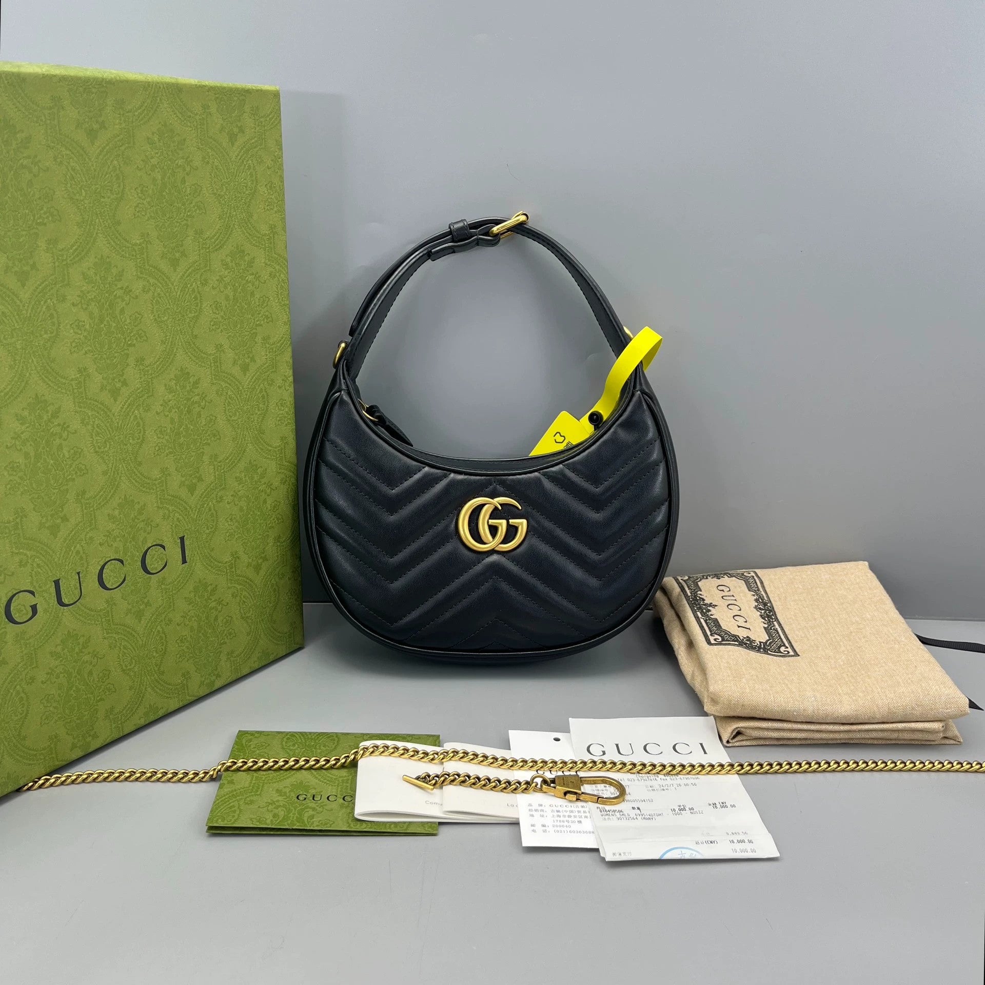 Gucci - GG Marmont Half Moon Bag - Leather - Black - (Small)