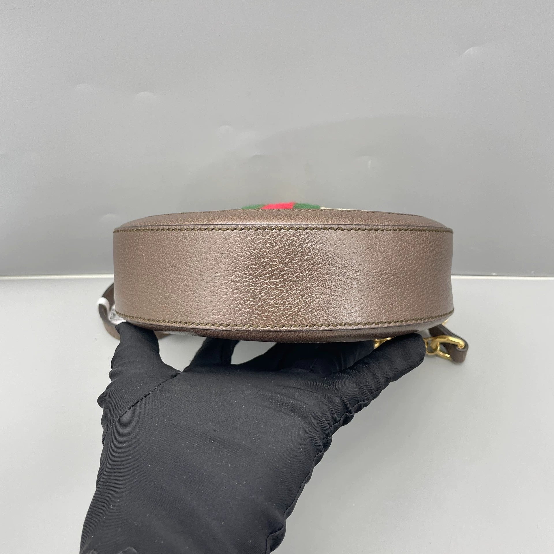 Gucci - Ophidia Round Mini Shoulder Bag - GG Supreme canvas with leather trim - Beige and ebony brown with red and green web stripe - (mini)