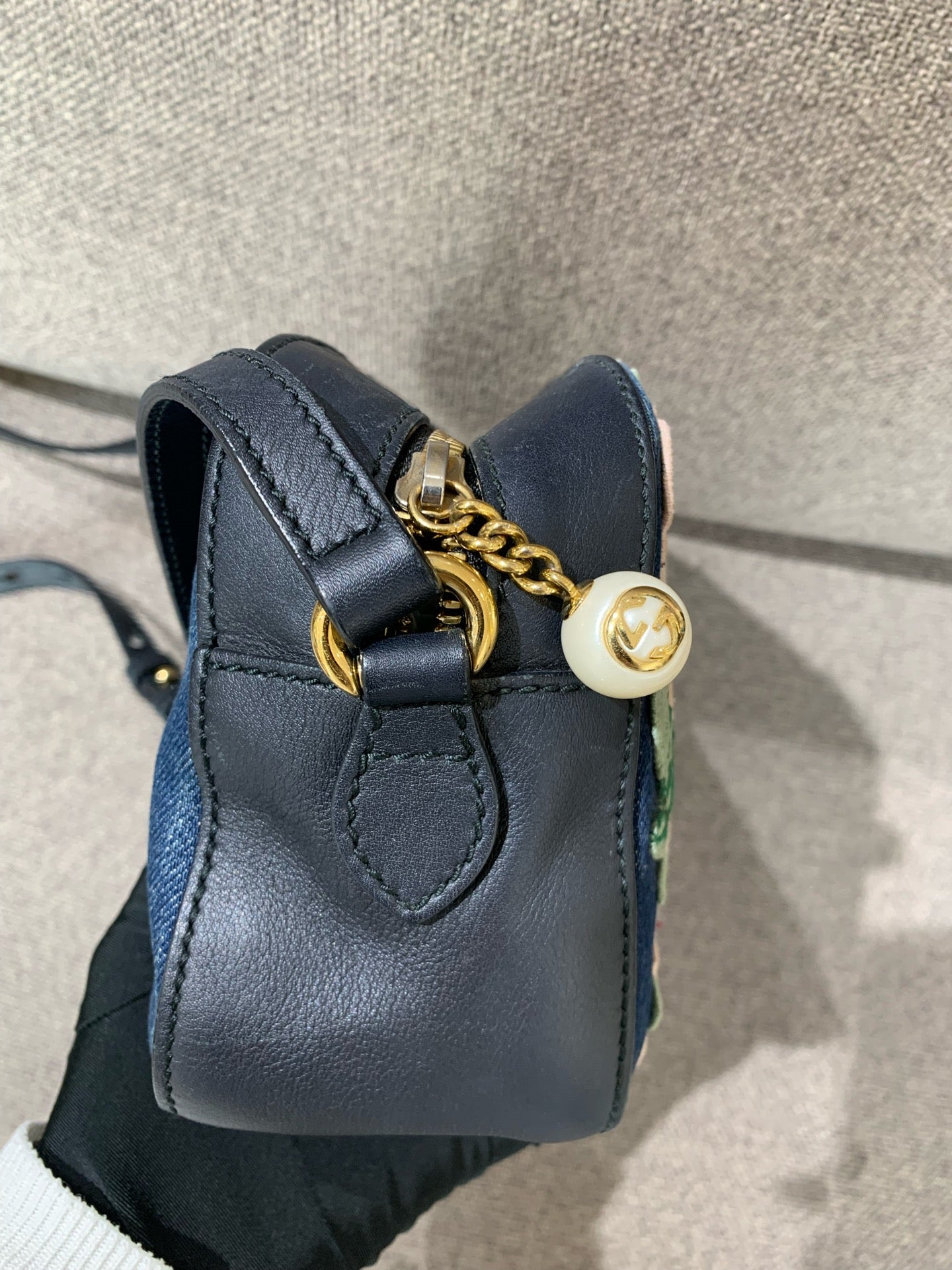 Gucci - Tiger Floral Embroidered Camera Bag - Denim and Leather - Blue - (small)