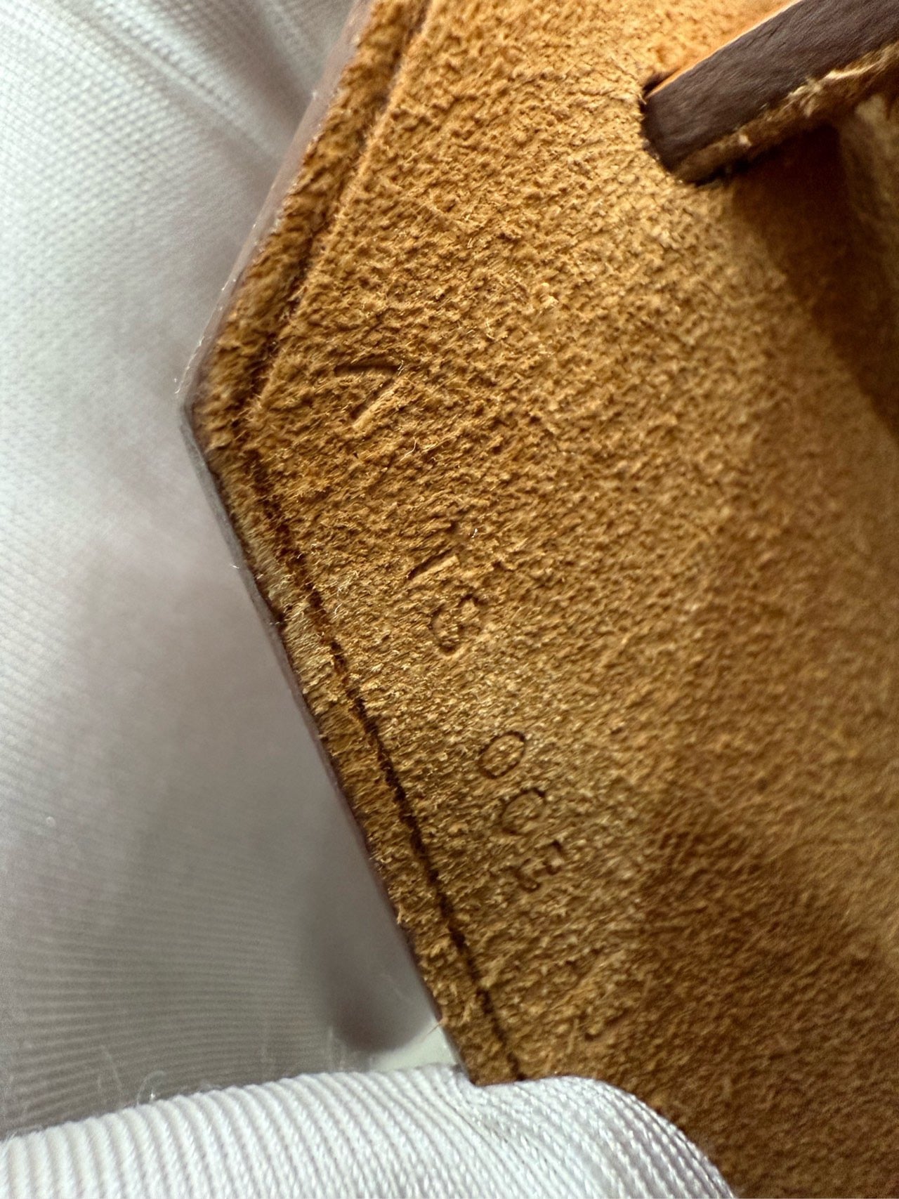 - Color: Rouge H (Red) with Natural (Tan) leather and Palladium-plated hardware
