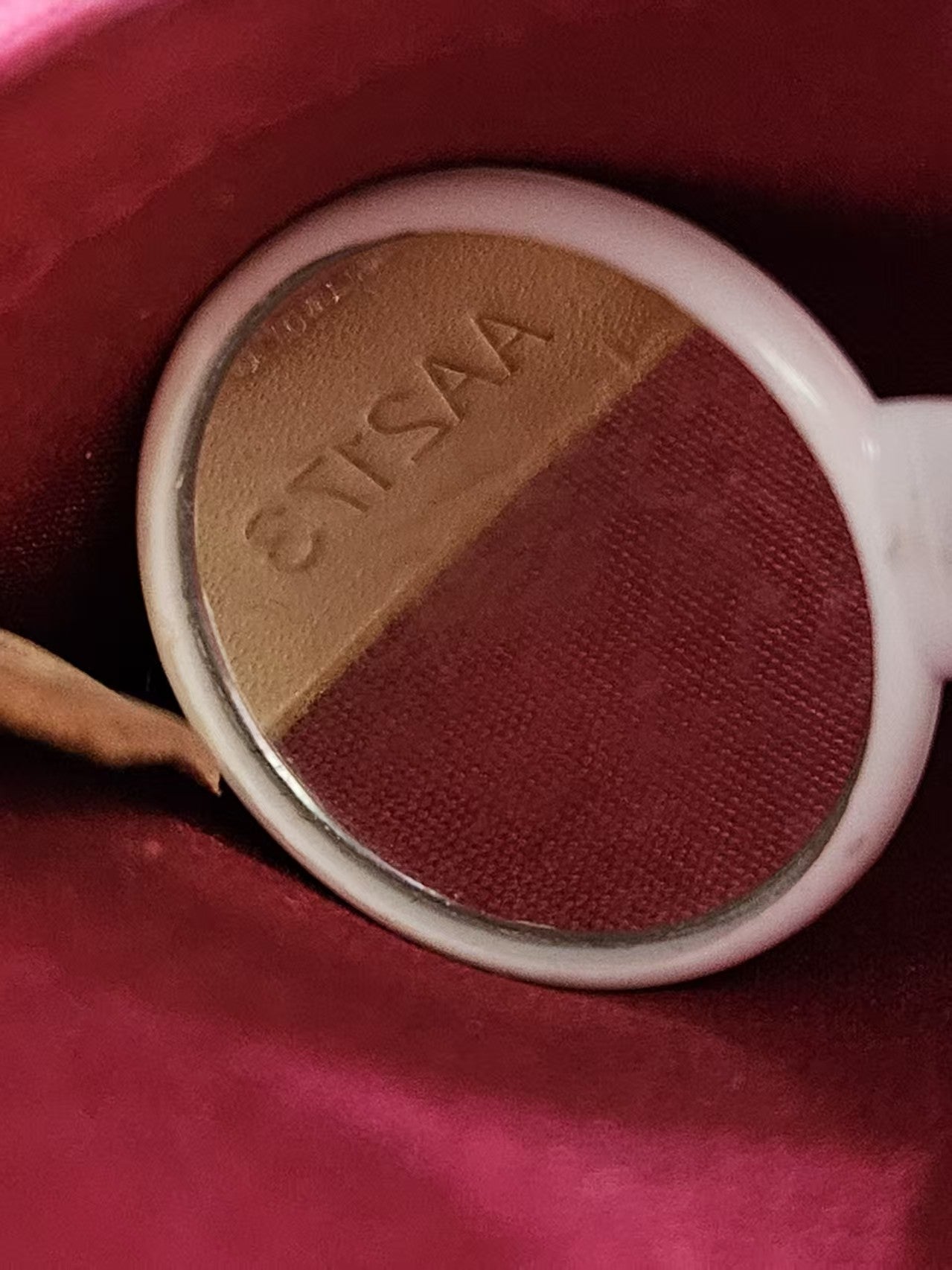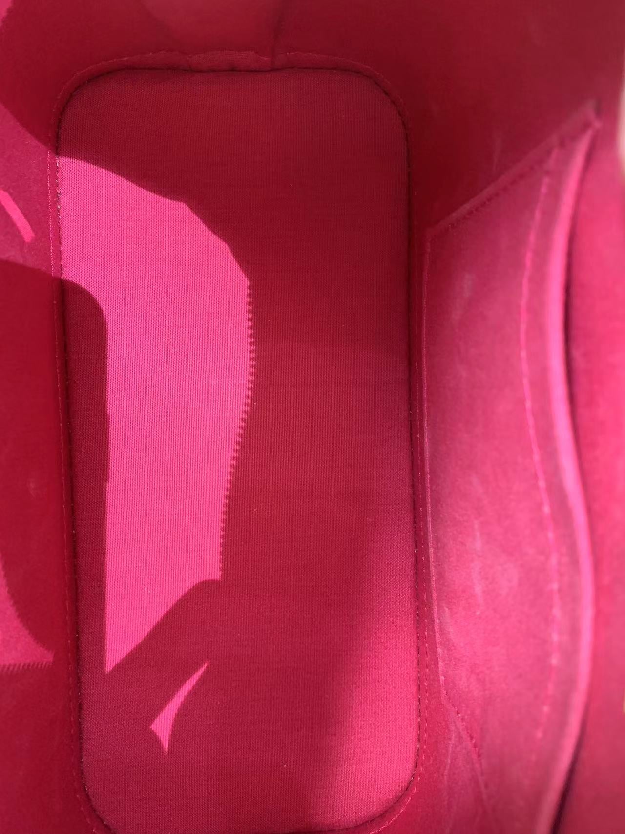 The interior is lined with a durable textile in a complementary magenta or red shade. It features one flat slip pocket, providing practical organization. The lining exhibits minor signs of use such as light dust or superficial marks, but is otherwise clean and free from significant damage.