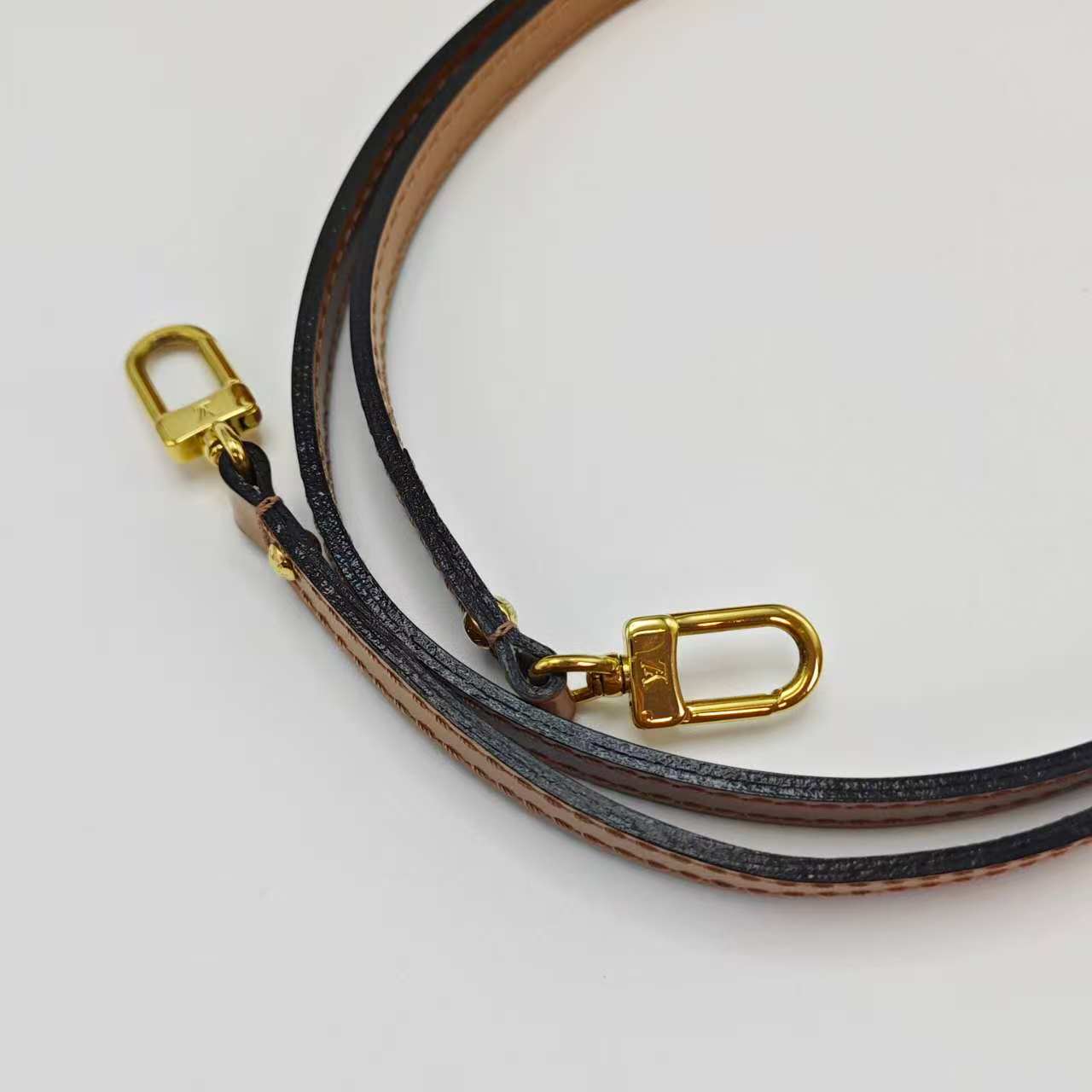 All hardware is polished gold-tone, including the double zipper closure, the signature Louis Vuitton padlock, and the D-rings for attaching the optional shoulder strap. Zippers glide smoothly, and the padlock is functional.