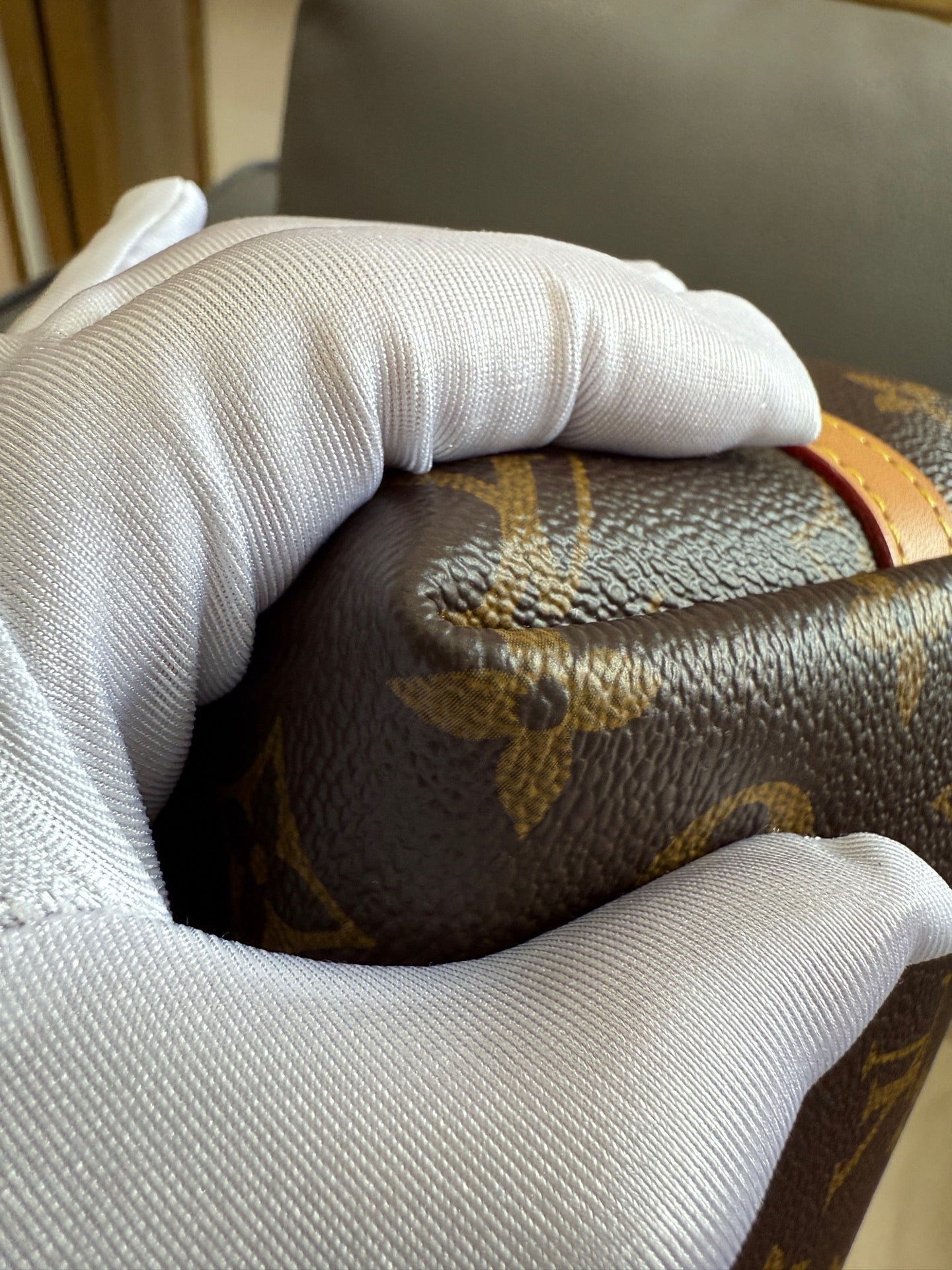 - Material: Monogram coated canvas with natural Vachetta leather trim and microfibre lining