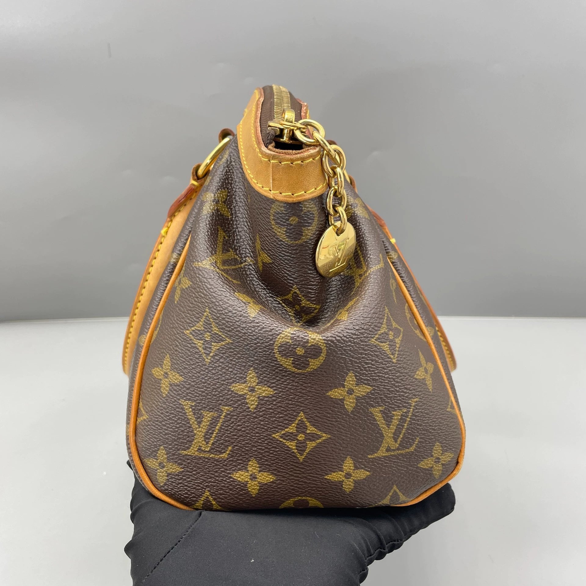 The bag's notable features include its charming pleated 'dumpling' silhouette, the classic Louis Vuitton Monogram canvas, and the natural Vachetta leather details which age beautifully over time. The functional top-handle design offers a classic carrying option.