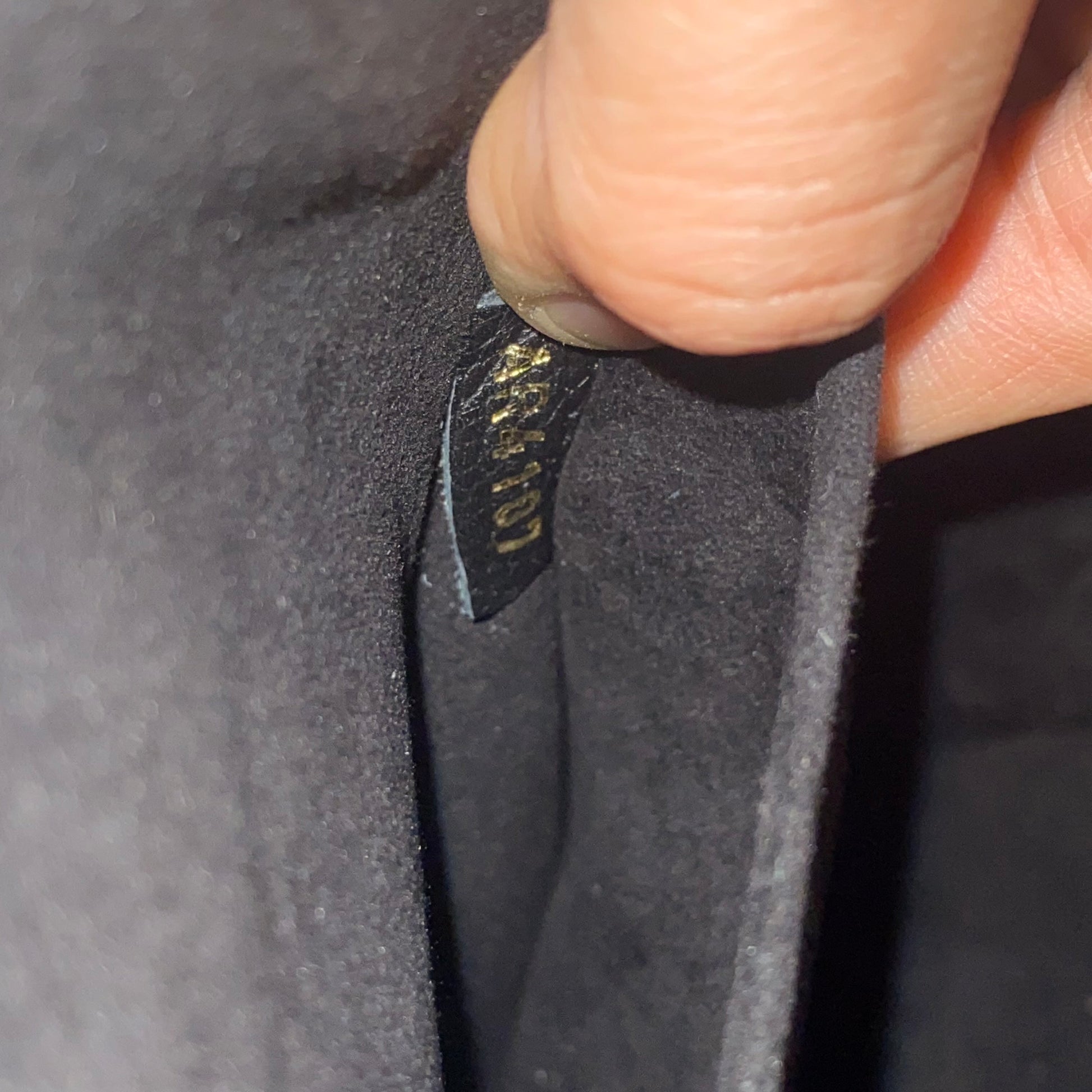 This Louis Vuitton Lockmeto handbag is in very good pre-owned condition, showcasing minimal signs of wear. The exterior full-grain black leather maintains its rich texture and structured shape, with no significant scuffs or discoloration. The gold-tone hardware remains bright with only minor superficial scratches consistent with gentle use. The interior is clean with no noticeable stains or damage, indicating careful handling. The handles are firm and show little to no wear, and the detachable shoulder strap is in excellent condition.