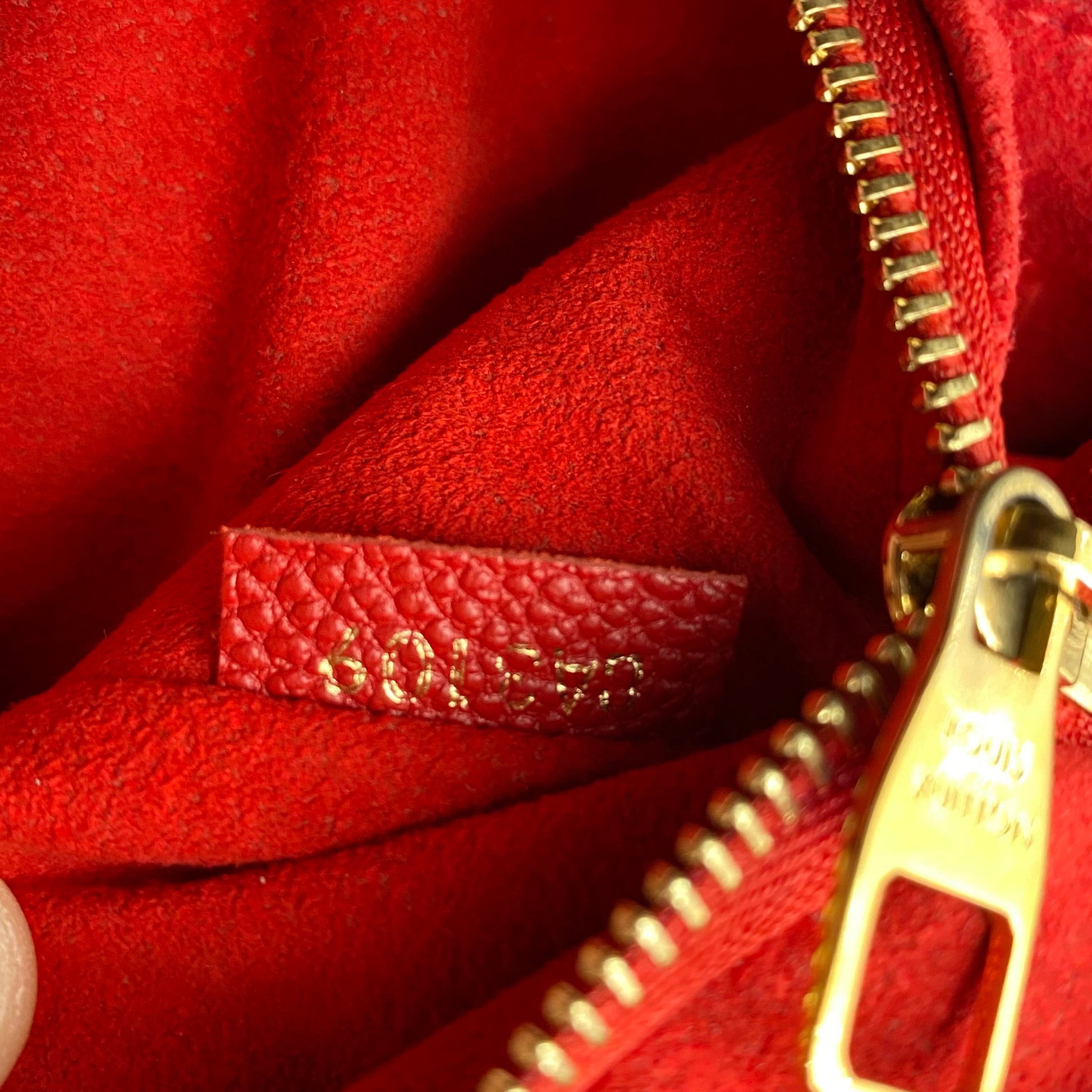 A key highlight of this bag is its striking bicolor design, blending the timeless Monogram canvas with a vibrant red leather flap. The versatile chain strap allows for various carrying options, from shoulder to crossbody wear, making it a stylish and functional accessory.