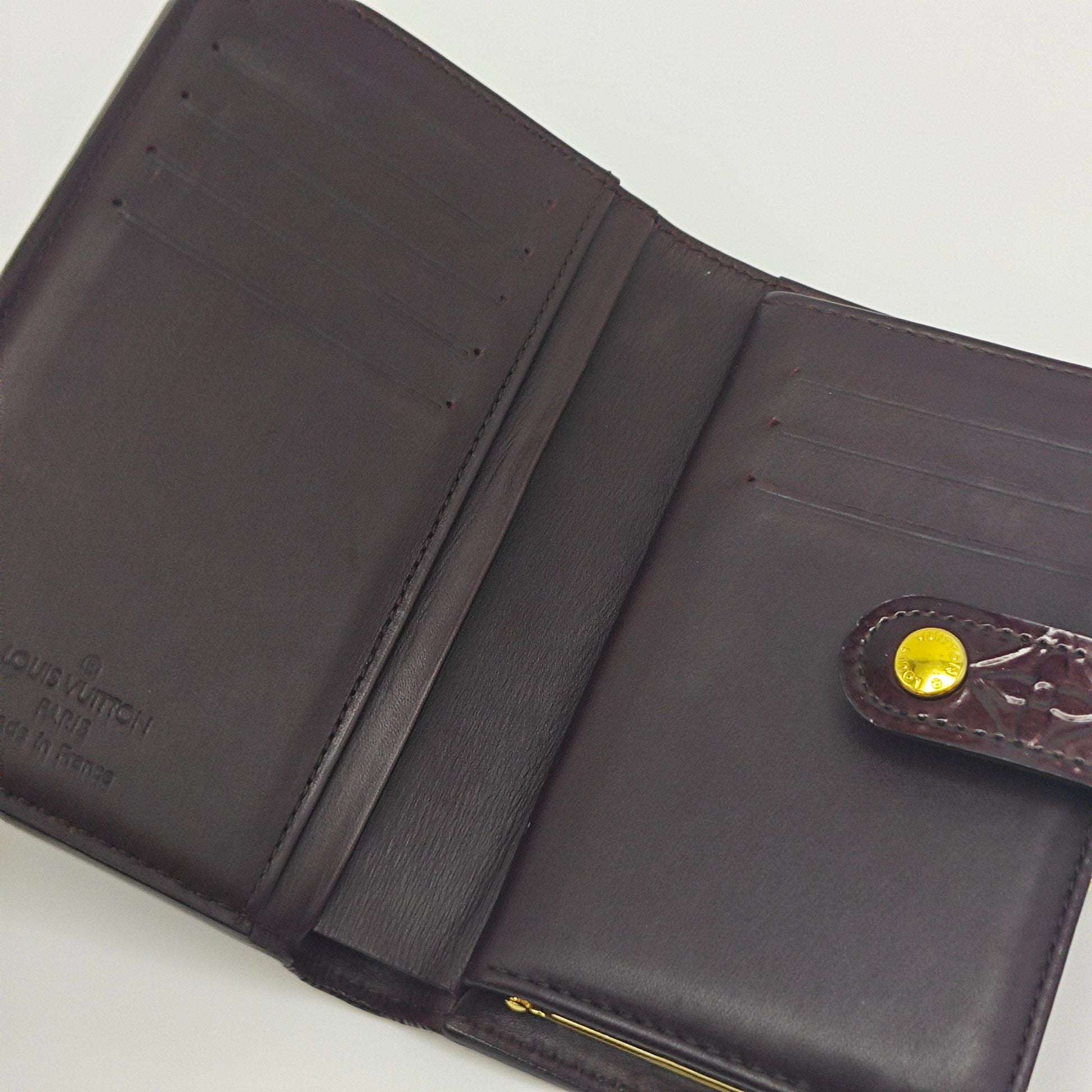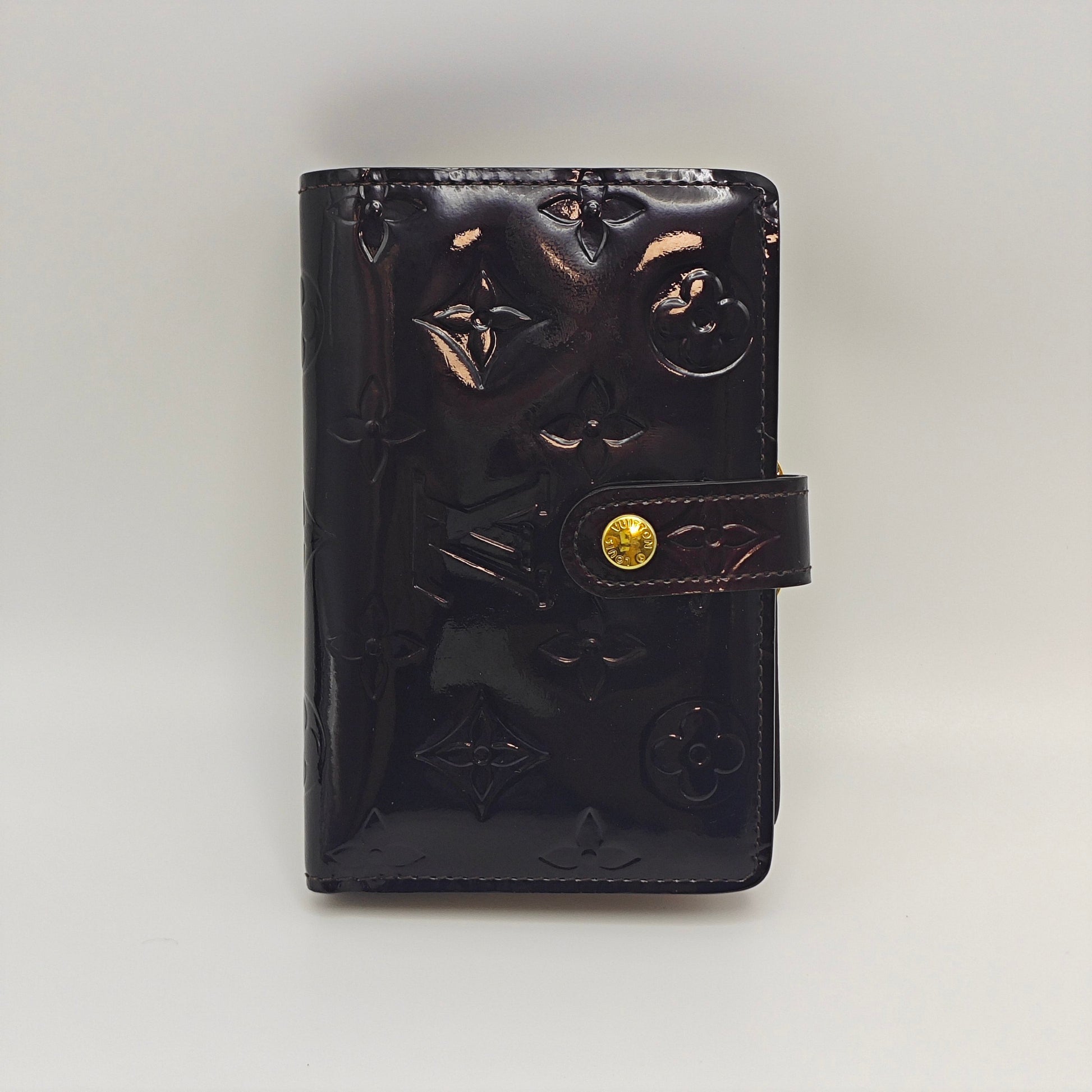 The distinctive Monogram Vernis patent leather provides a luxurious and elegant appeal, while the compact bifold design with a traditional kiss-lock coin purse offers practical organization for daily essentials.