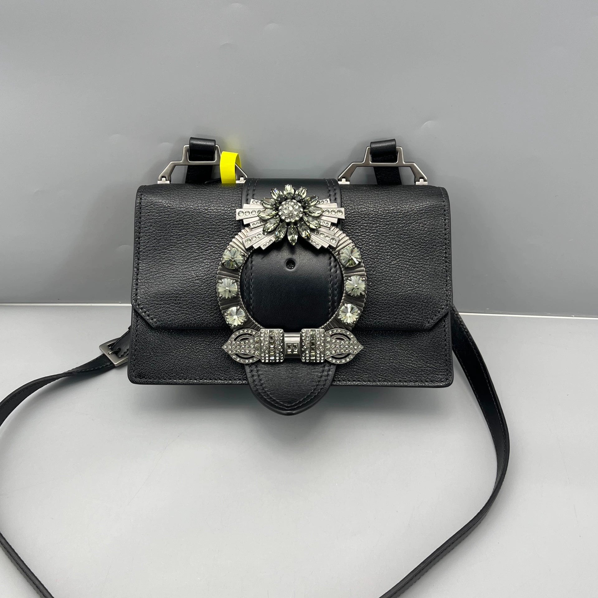 Miu Miu - Jeweled Buckle Shoulder Bag - Leather - Black - (Small)