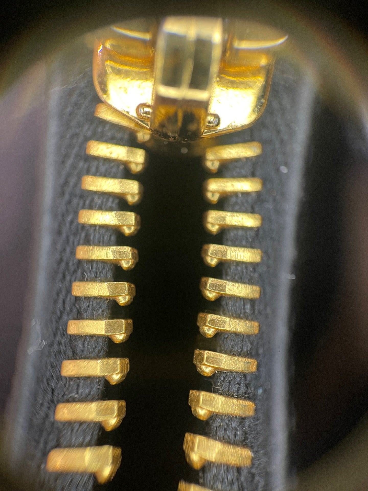 All hardware is polished gold-tone, including the top zippers, handle attachments, strap clasps, and protective bottom feet. The interior features a gold-tone Prada 'Made in Italy' plaque. The zipper teeth are bright and function smoothly. 'PRADA' engraving is visible on some hardware elements, such as the bottom feet and zipper pull.